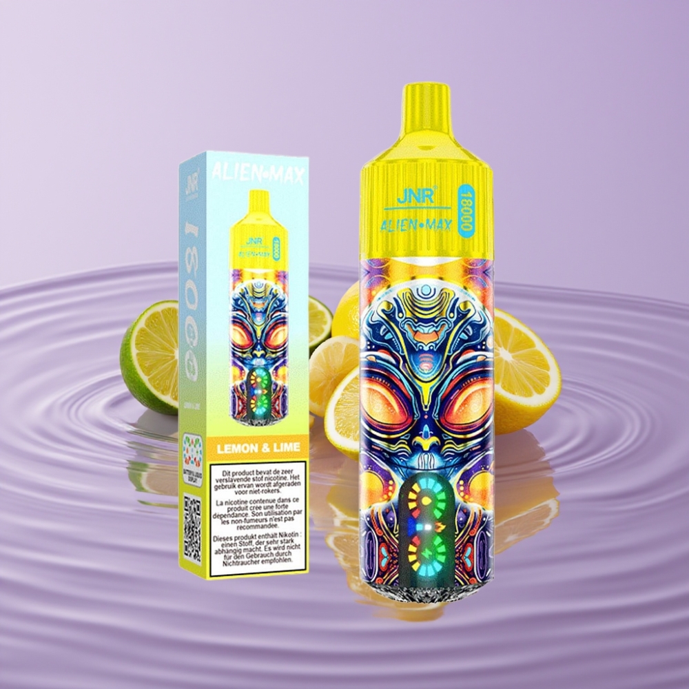 JNR Alien Max 18000 Puffs بخاخ إلكتروني ليمون ولايم - شاشة LED ذكية، 28مل، 850مAh