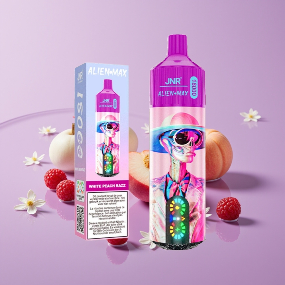 JNR Alien Max 18000 Puffs - شيكور الخوخ الأبيض والتوت - شاشة LED ذكية، 28مل عصير، 850mAh
