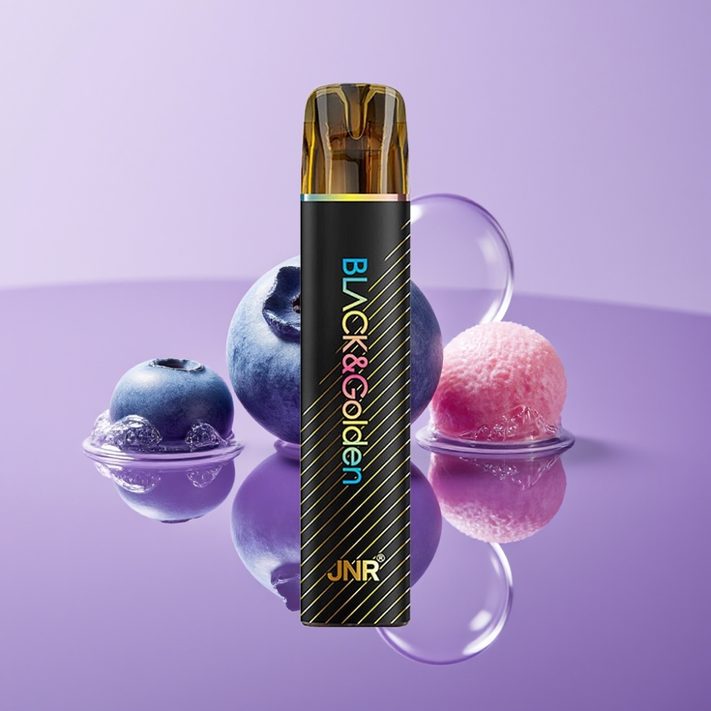 JNR Black&Golden 600+200 نفث سيجارة إلكترونية قابلة للتصريف بنكهة علكة التوت الأزرق - 800 نفث، 2 مل، 2% نيكوتين
