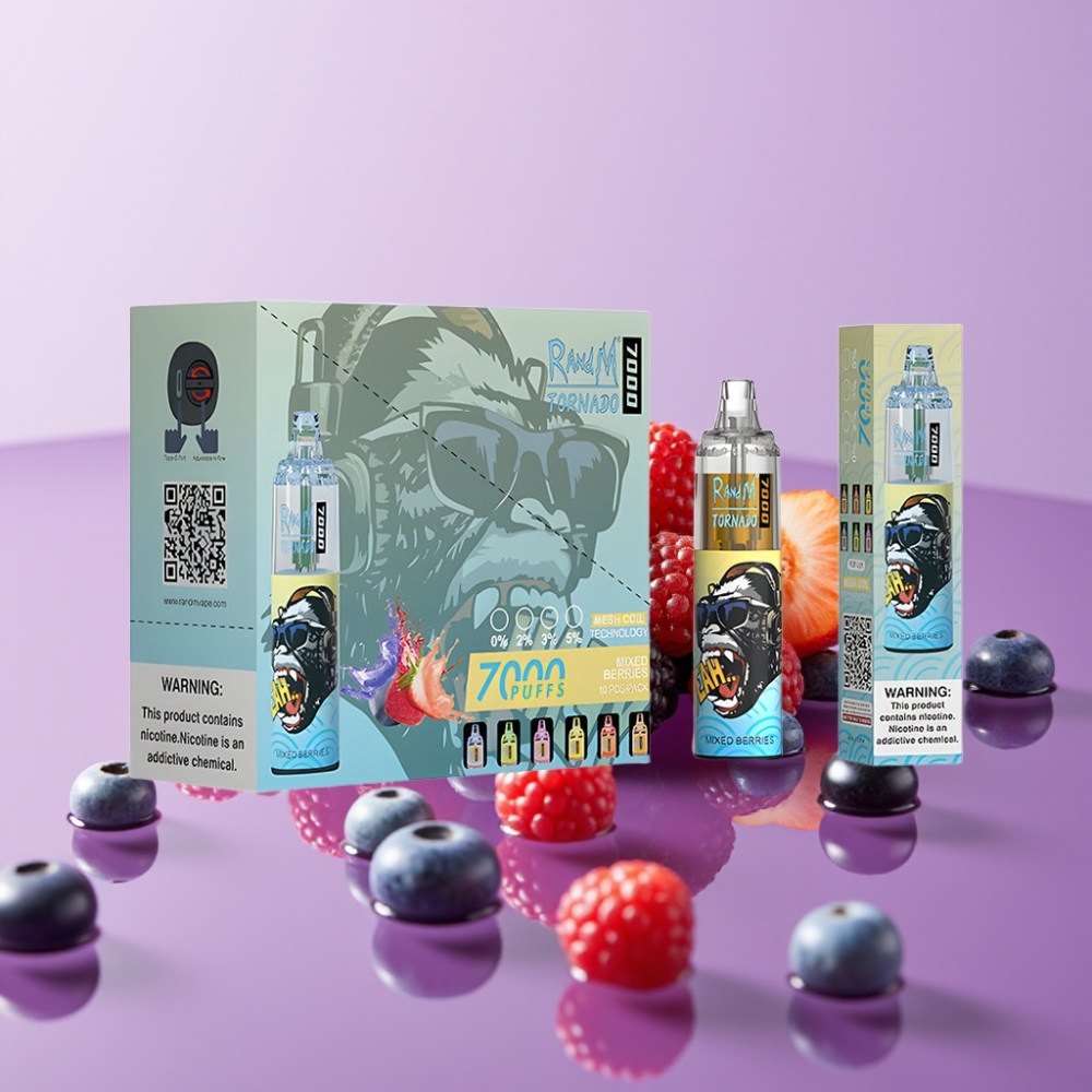 RandM Fumot Tornado 7000 فاب disposable بنكهة التوت المختلط - 14 مل، 850 مللي أمبير، شبكة، نوع سي