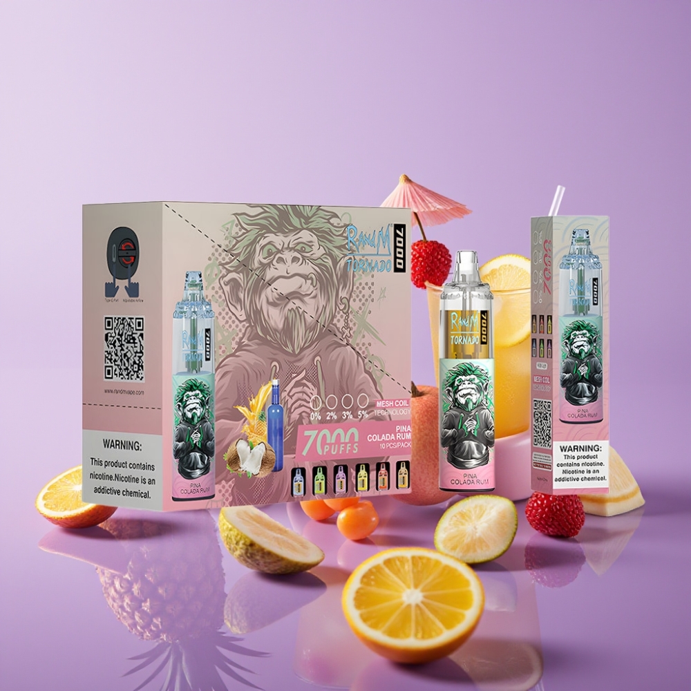 Fumot Tornado 7000 بخاخ قابل للتخلص بنكهة بينا كولادا وروم - 7000 نفخة، 14 مل، 850 مللي أمبير، شبكة