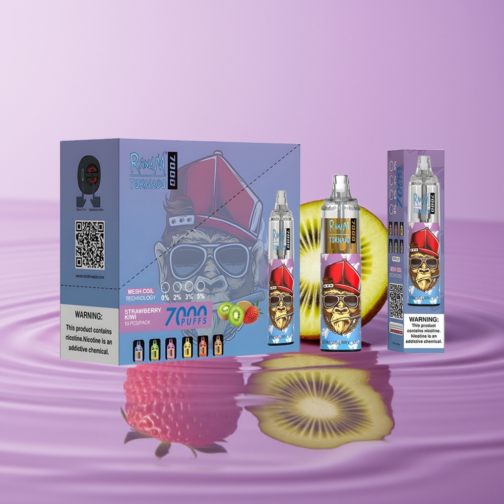Fumot Tornado 7000 سيجارة إلكترونية فراولة كيوي - 7000 نفخة، 14 مل، 850 ملي أمبير، شبكة